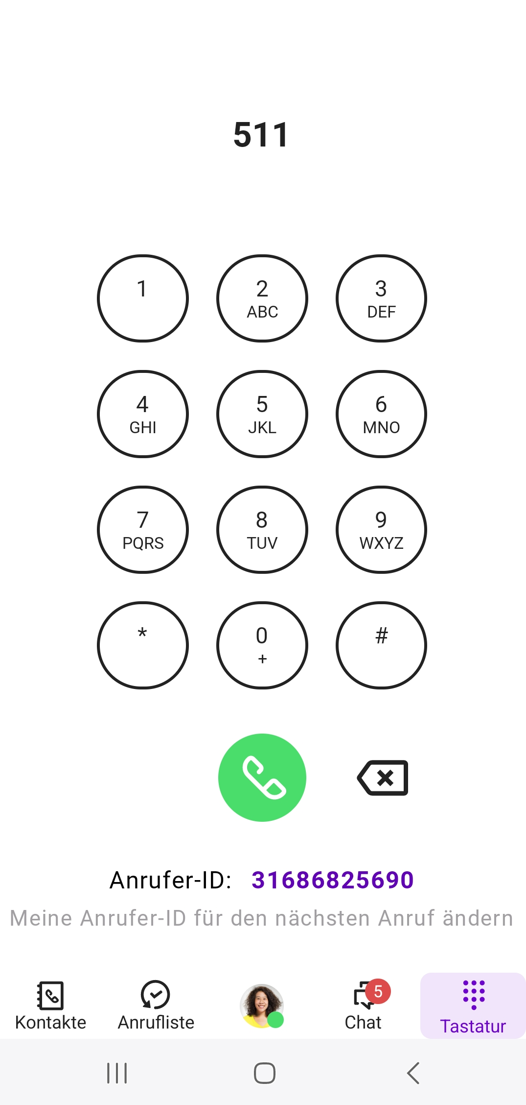 2 Geben Sie gewünschte Rufnummer (hier: 511) über die Ziffern der Tastatur ein.