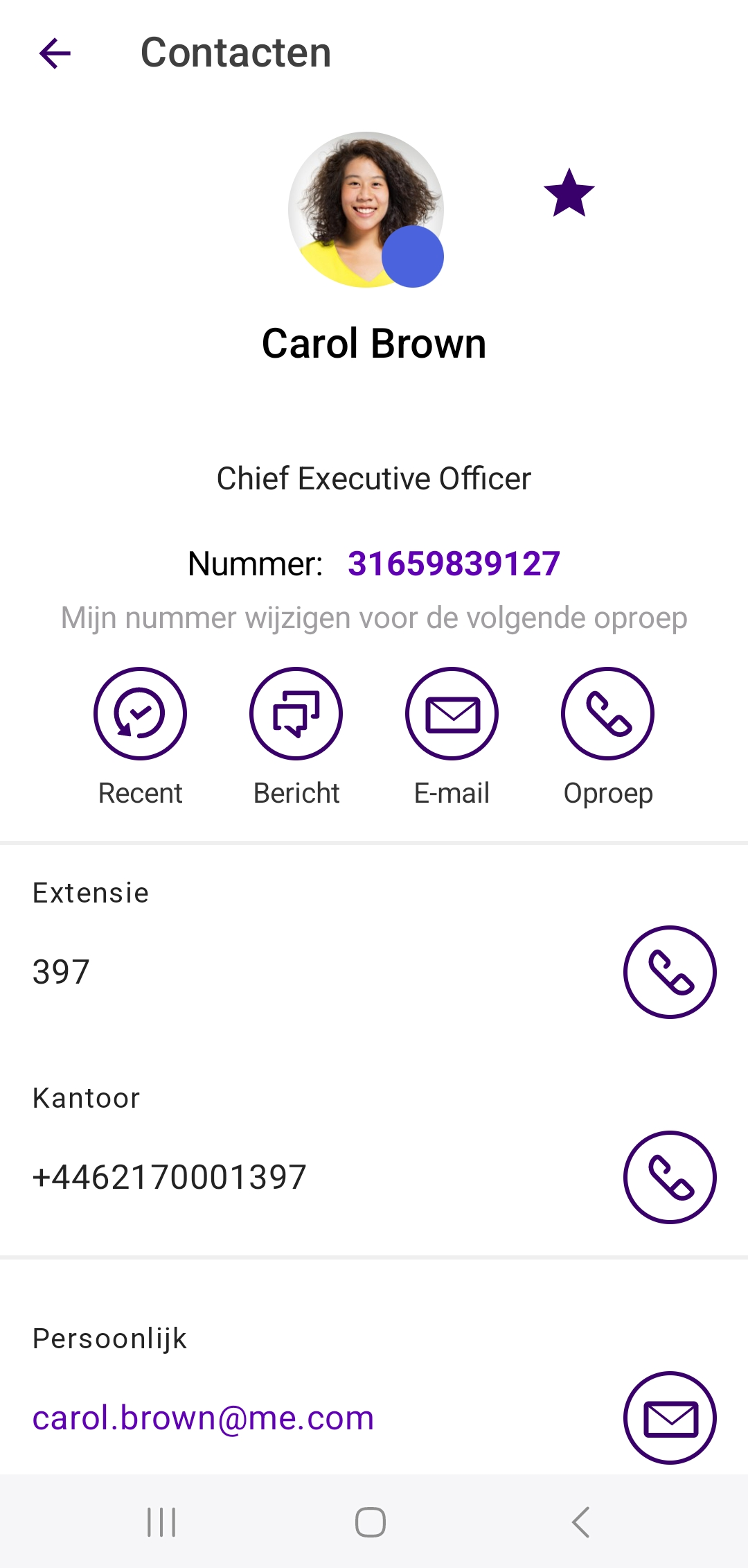 Collega's en zakenpartners met wie u vaak telefoneert, kunnen als favorieten worden opgeslagen. Je kunt hierop filteren in de contactenlijst.