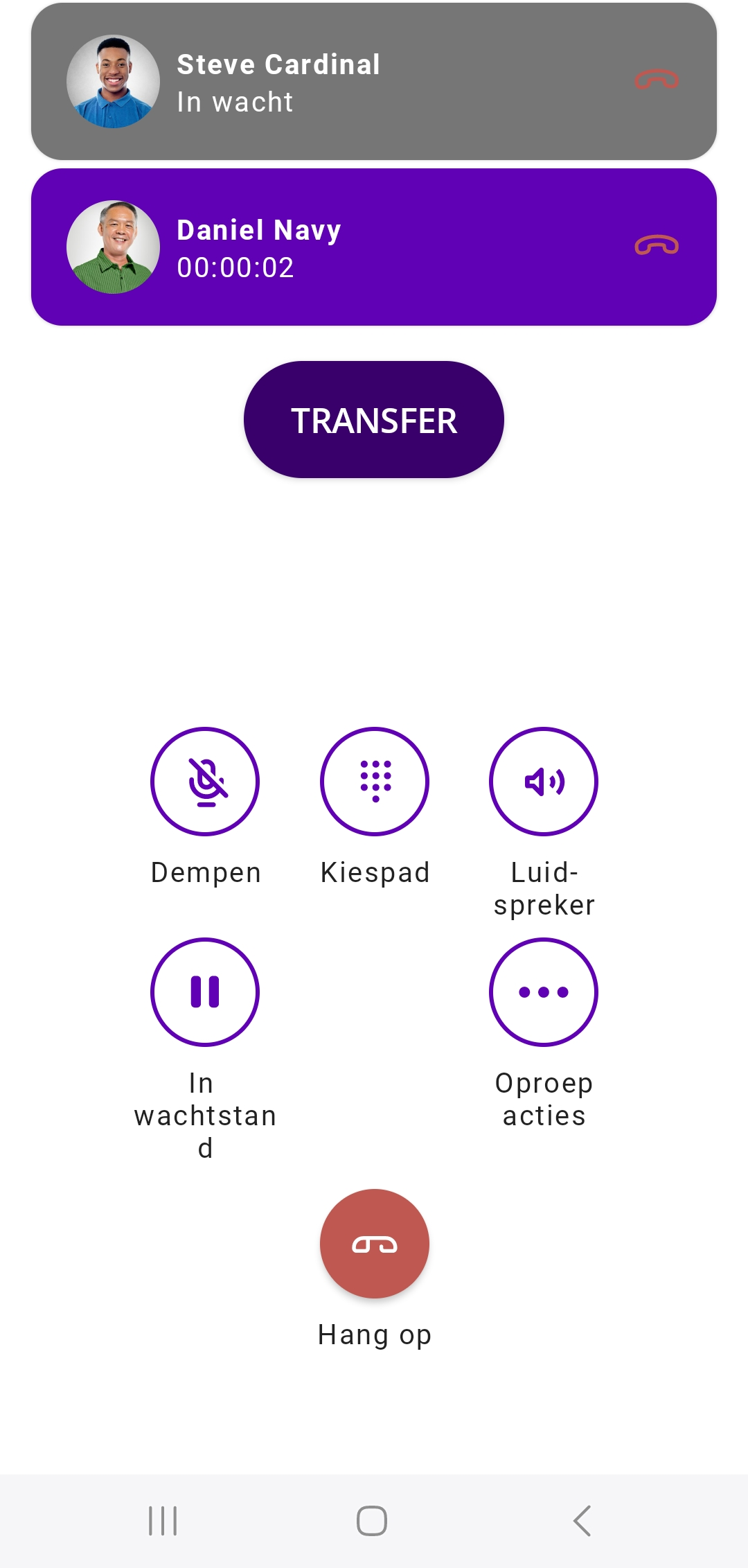 *Het betreffende contact wordt gebeld en het actieve gesprek wordt in de wacht gezet. De beller in de wacht hoort wachtmuziek.