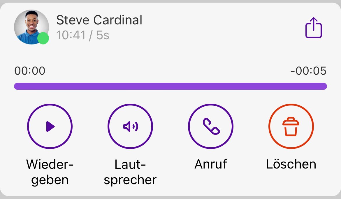 Neben dem Abspielen der Voicemail haben Sie folgende Optionen: